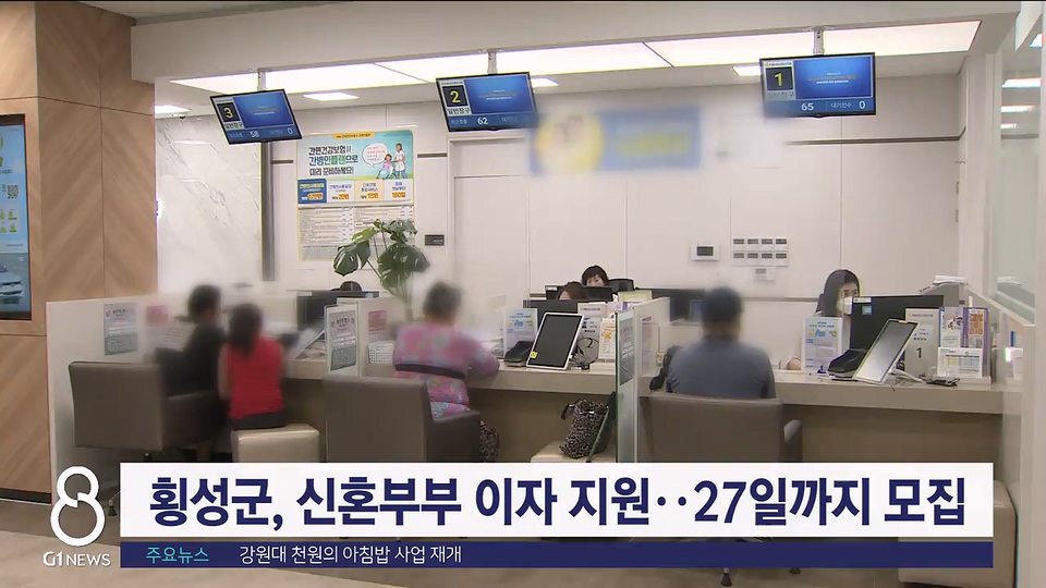 횡성군이 신혼부부를 대상으로 주거자금 대출이자를 지원하기로 하고, 오는 27일까지 대상자를 모집합니다.