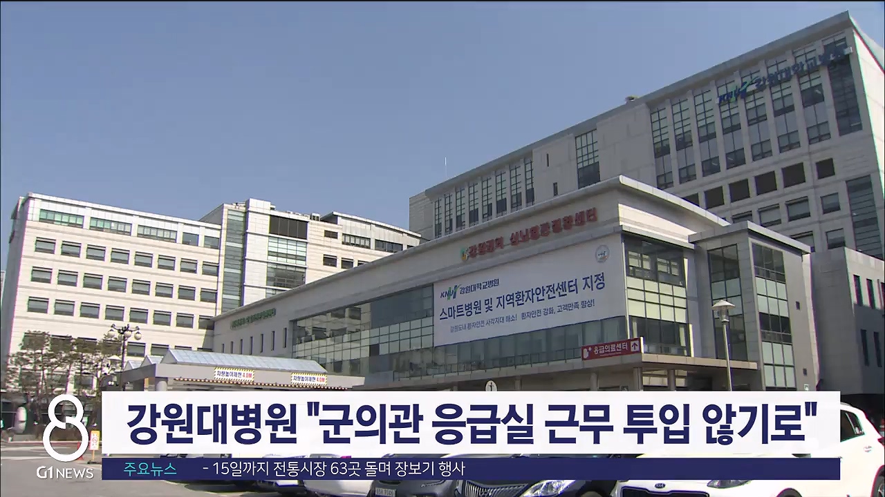 앞서 강원대병원은 응급의료센터 성인 야간 진료를 무기한 중단했으며, 주말과 공휴일에만 응급의료센터 진료를 오후 9시까지 연장 운영하고 있습니다.