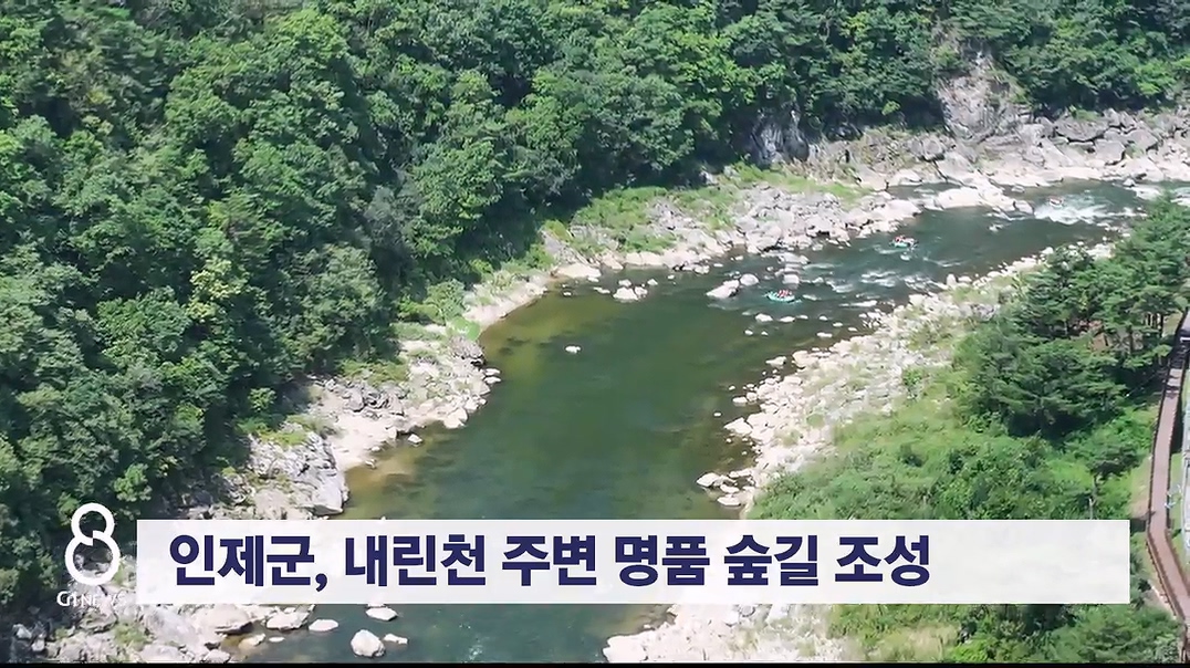 인제군이 국내 최고의 래프팅 명소로 손꼽히는 내린천 주변에 명품 숲길을 조성합니다.
