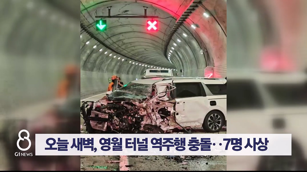 오늘 새벽, 영월 터널 역주행 충돌..7명 사상