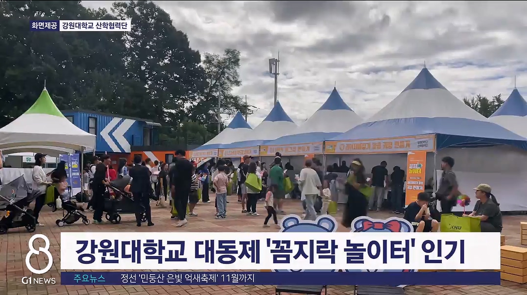 강원대학교 대동제 행사로 춘천캠퍼스 KNU스타트업큐브 일대에서 열린 '꼼지락 놀이터'가 인기를 끌며 성황리에 끝났습니다.