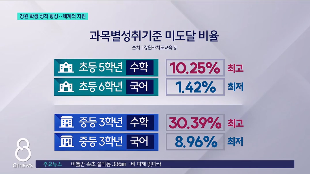 강원 학생들의 학업 수준을 가늠할 수 있는 학생 성장 진단평가 결과가 나왔습니다.