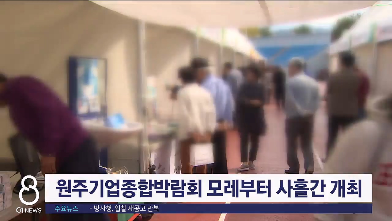 원주시가 주최하고 강원자치도경제진흥원이 주관하는 '2024 원주기업종합박람회'가 모레(27일) 원주 댄싱공연장 특설무대에서 개막해 사흘간 이어집니다.
