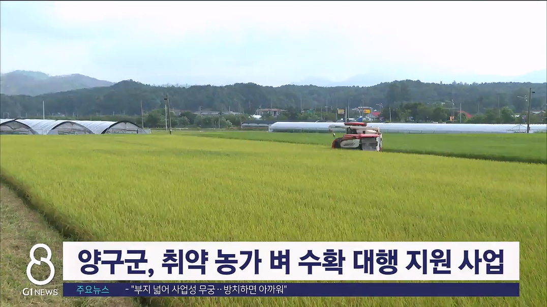 양구군이 농촌 일손 부족을 해결을 위해 11월 말까지 벼 수확 농작업 대행 지원 사업을 추진합니다.