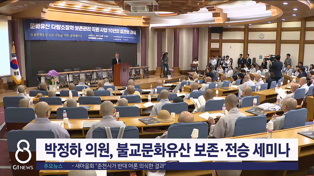 국회 문화체육관광위원회 여당 간사인 박정하 의원이 주최한 오늘(30일) 세미나에는 불교중앙박물관장 서봉 스님을 비롯한 불교계 관계자와 문화계 관계자들이 참석했습니다.