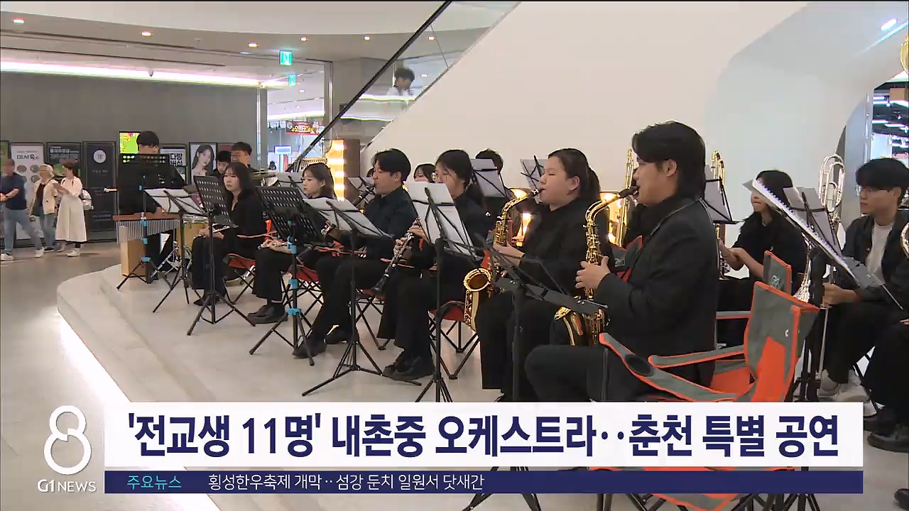 전교생이 11명인 내촌중학교의 지역연계 오케스트라가 춘천 시민을 대상으로 특별 공연을 펼쳤습니다.