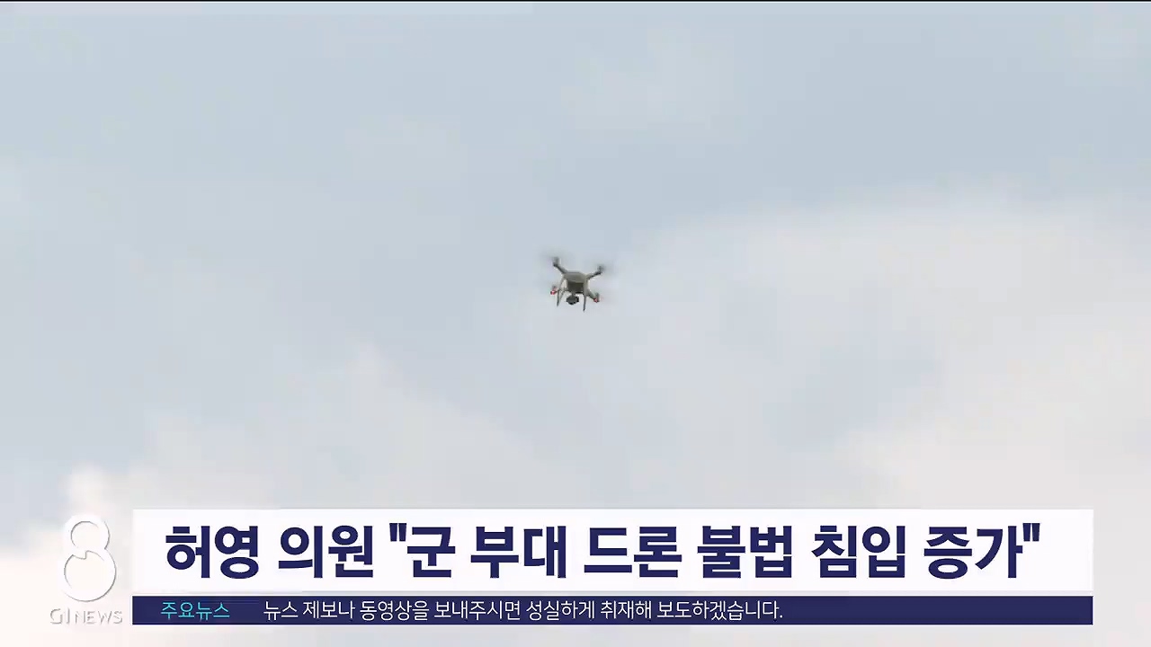 최근 5년간 군 부대 내 드론 불법 침입이 33건으로, 지난 2020년 0건에서 지난해에는 15건으로 늘었습니다.