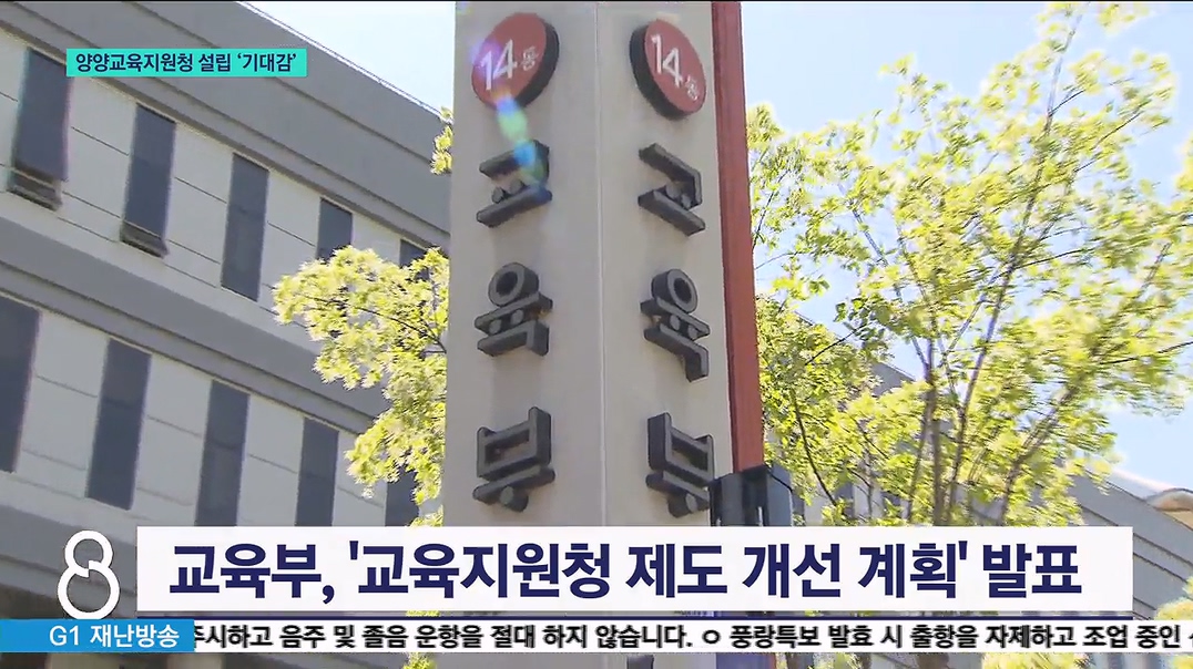 현재 양양지역 교육은 인근 속초양양교육지원청이 함께 맡아 관리하고 있습니다.