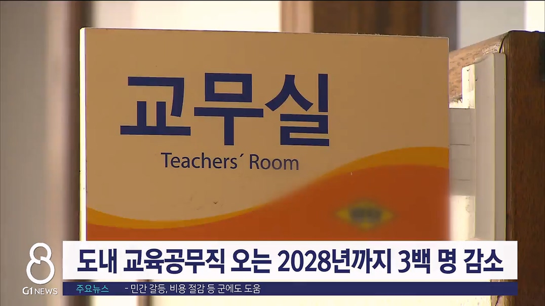 학령인구 감소로 도내 교육공무직 정원이 오는 2028년에는 현재보다 300명 가까이 줄어드는 것으로 나타났습니다.