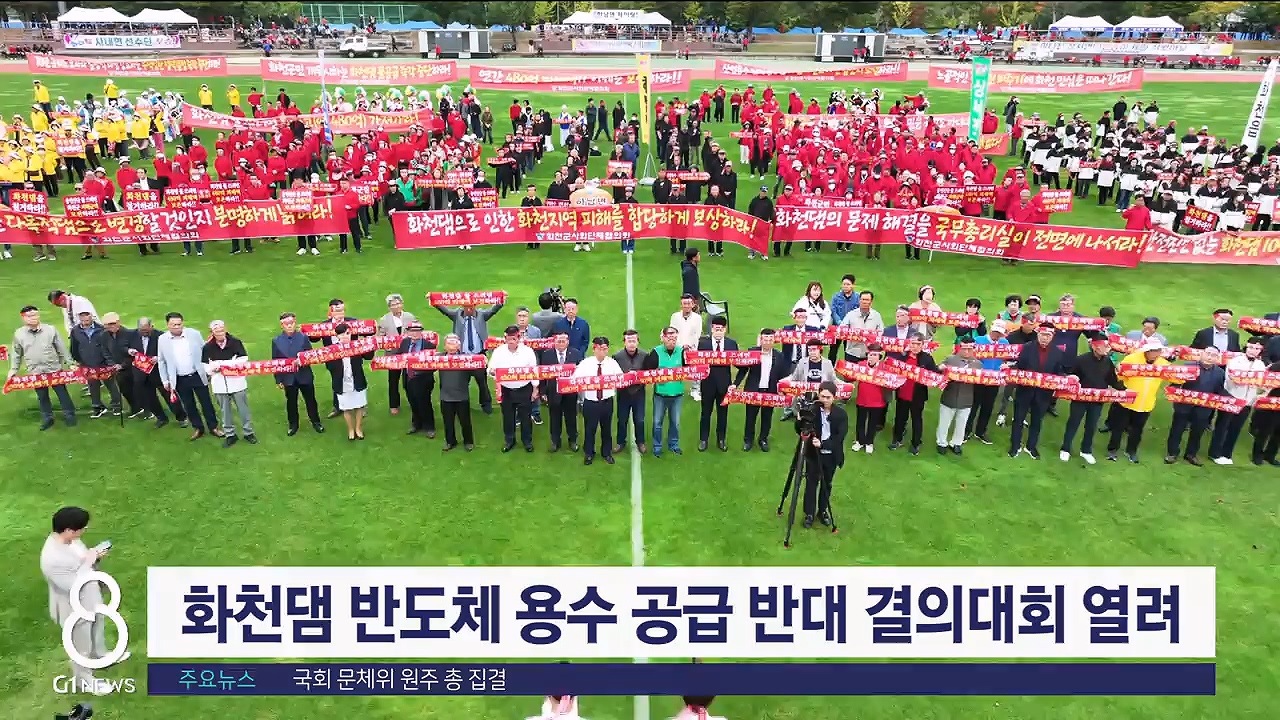화천군 사회단체협의회는 오늘(11일) 화천생활체육공원에서 화천댐 용수 반도체 산단 공급 반대 범군민 결의대회를 개최했습니다.