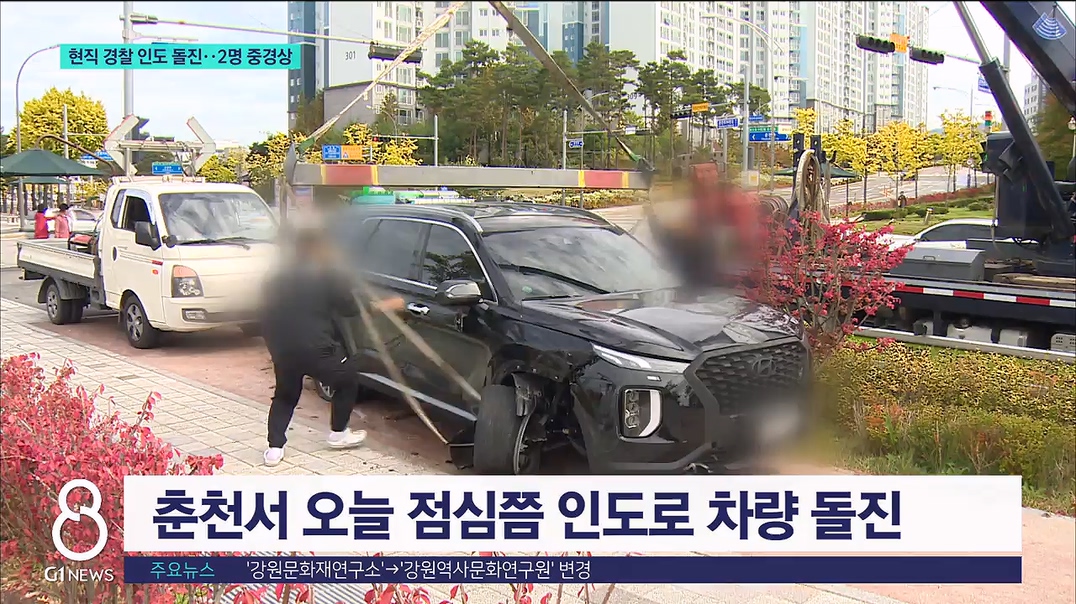 경찰의 날인 오늘(21일) 춘천에서 차량이 인도로 돌진해 행인 2명이 크고 작은 부상을 입는 사고가 났습니다.