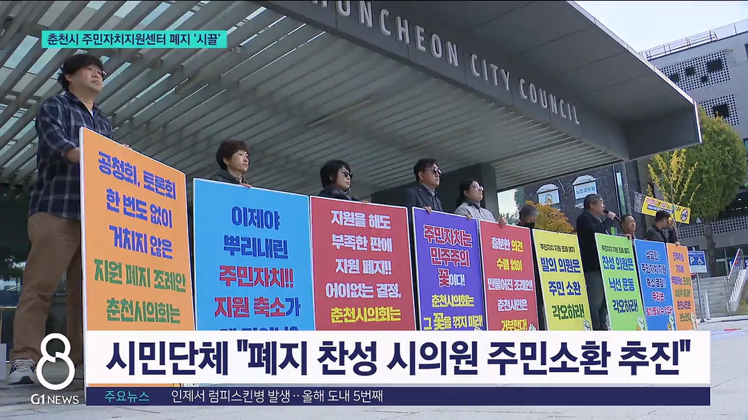 "그런데 최근 국민의힘 소속 춘천시의원을 중심으로, 춘천시주민자치지원센터의 지원 근거를 폐지하는 조례안을 발의해 논란이 일고 있습니다."