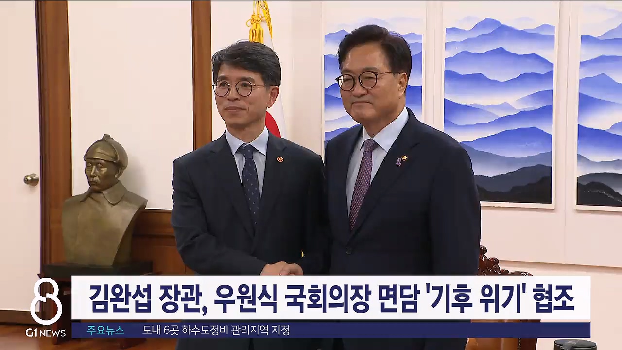 우원식 국회의장이 김완섭 환경부 장관과 만나 기후 위기에 대응해 국회와 환경부가 긴밀히 협력하자고 제안했습니다.