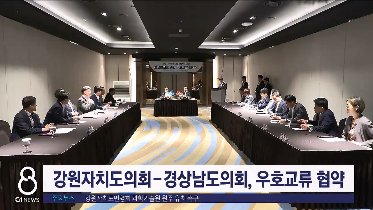 강원자치도의회와 경상남도의회는 오늘(29일) 오후 2시 강릉 스카이베이호텔에서 상생발전을 위해 우호교류 협약을 체결했습니다.