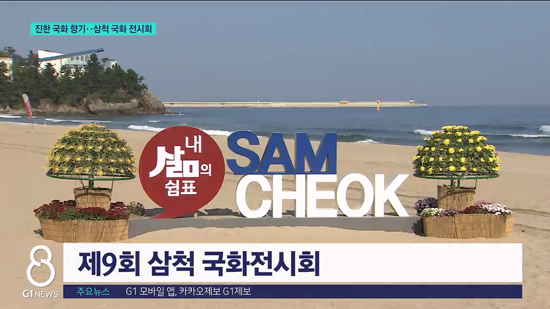 남) 여러분 안녕하십니까. 오늘 G1 8시뉴스는 가을을 대표하는 꽃 국화 전시회가 열리고 있는 삼척해변 일대에서 전해드립니다.