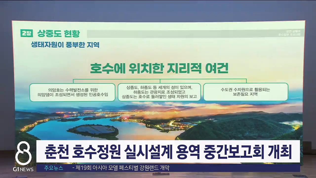 춘천시 역점 사업인 '춘천 호수정원 조성사업 실시설계 용역 중간보고회'가 오늘(31일) 열렸습니다.