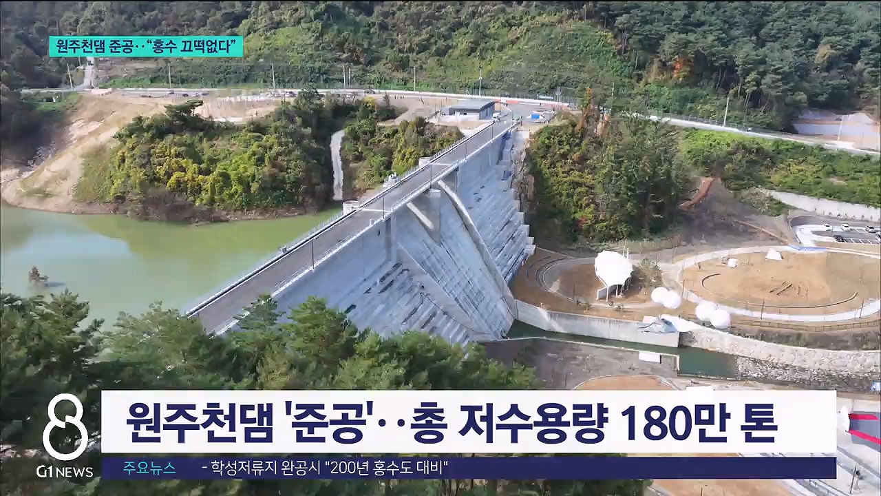 원주천댐 준공으로 원주천의 홍수 예방 효과는 클 것으로 기대됩니다.