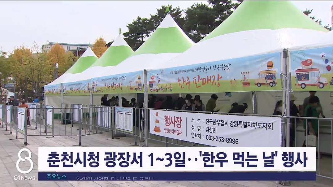 한우자조금관리위원회와 전국한우협회 강원자치도지회는 오늘(1일)부터 사흘간 춘천시청 호반광장에서 '한우 먹는 날' 행사를 엽니다.
