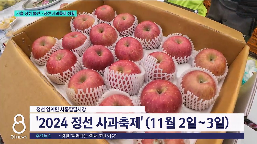 정선에서는 특유의 아삭하고 달콤한 맛이 일품인 고랭지 사과 축제가 열렸습니다.
