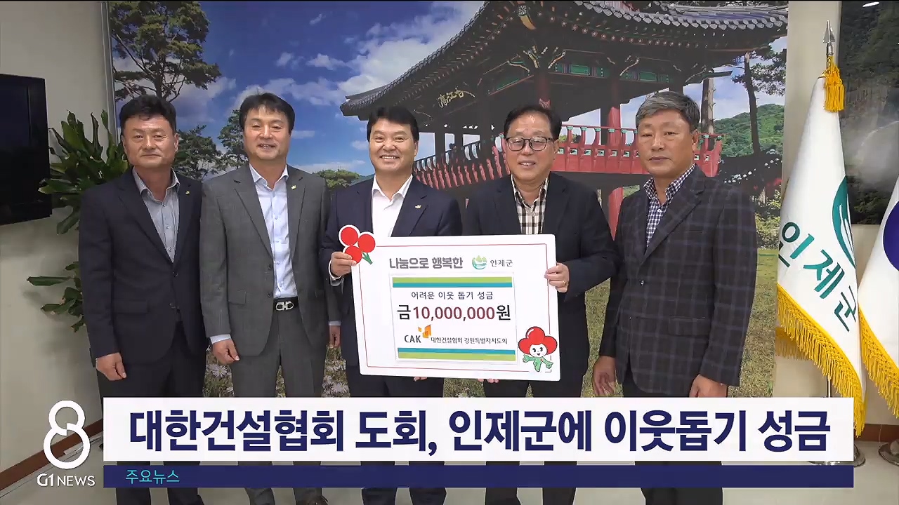대한건설협회 강원자치도회는 강원도사회복지공동모금회를 통해 이웃돕기 성금 천만 원을 인제군에 지정 기탁했습니다.