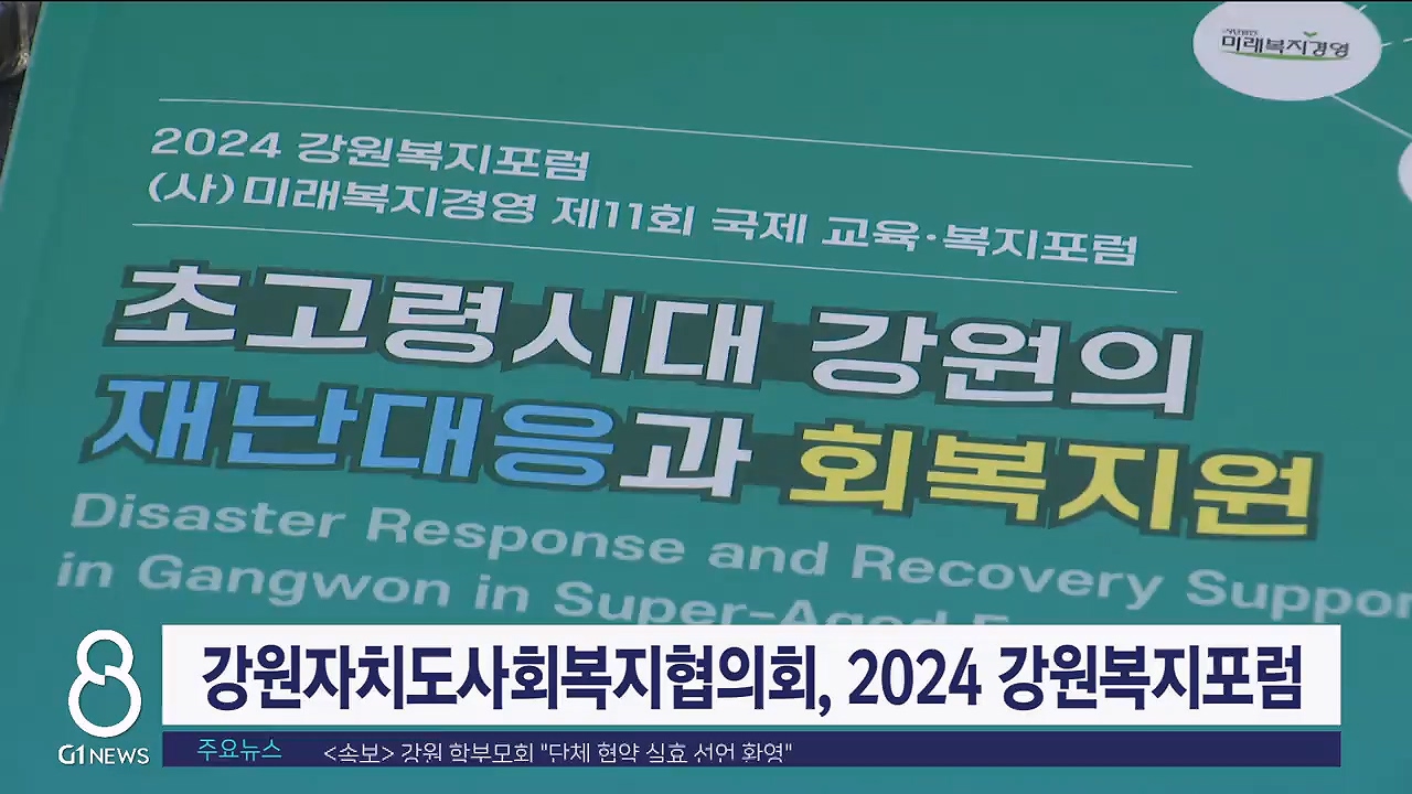 강원자치도사회복지협의회가 주관하고 G1방송이 후원하는 2024 강원복지포럼이 오늘(4일) 춘천 세종호텔에서 열렸습니다.