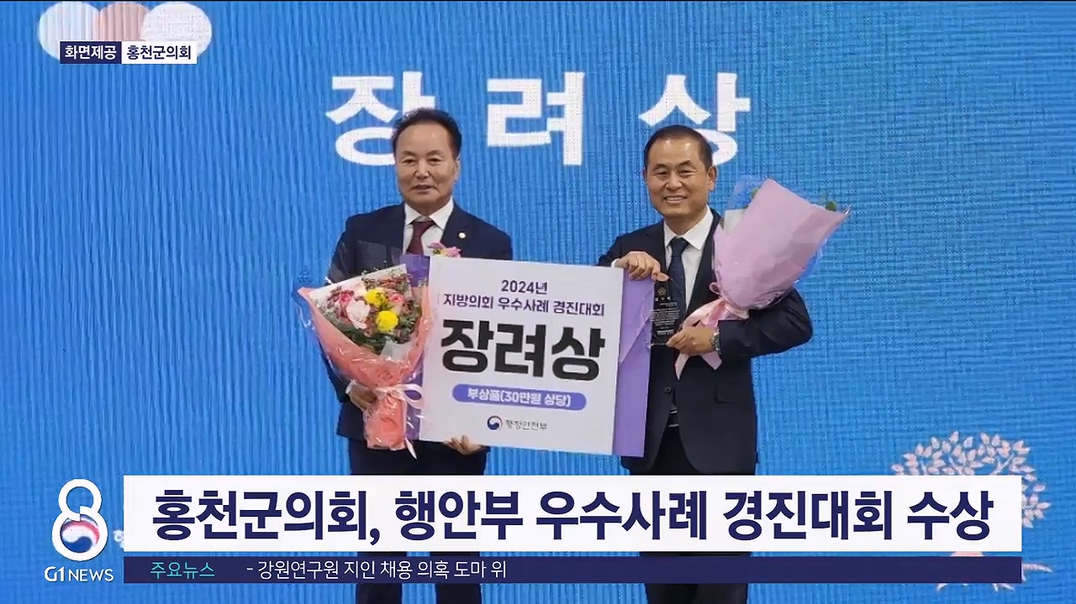 홍천군의회 의원 연구단체 게스트(GUEST)가 2024년 지방의회 우수사례 경진대회에서 장려상을 수상했습니다.