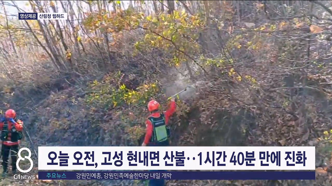 오늘(7일) 오전 11시 8분쯤 고성군 현내면 명파리의 한 야산에서 불이 났습니다.