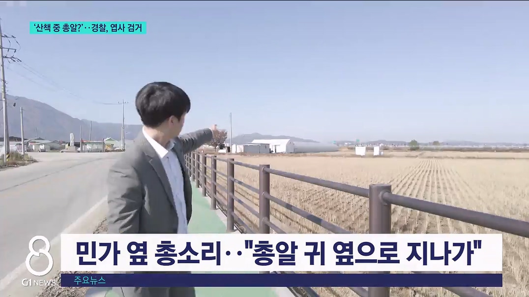 "유해조수 (포획에) 나가기 전에 이쪽에 점검 차 논 바닥이 무르거든요. 이쪽에 시범 삼아 발사를 했던 거 같아요."