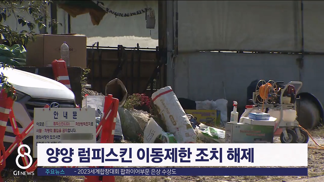 강원자치도 럼피스킨 방역대책본부는 양양군 손양면의 한우농장에서 발생한 럼피스킨에 대해 이동제한 조치를 지난 8일부터 해제했다고 밝혔습니다.