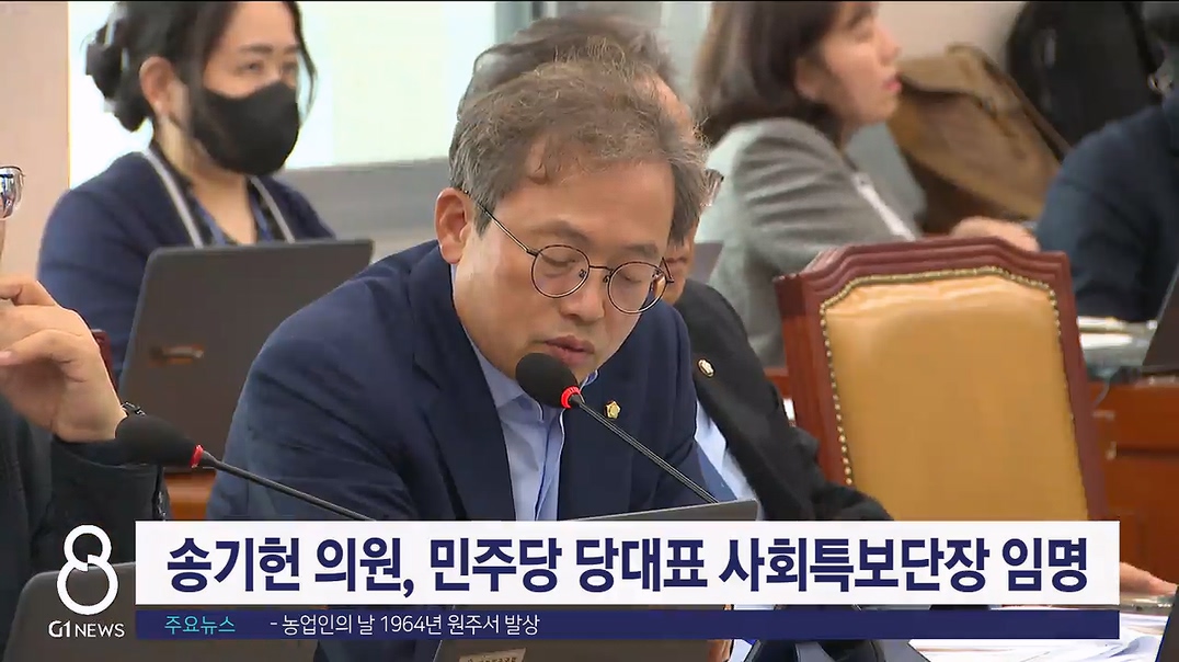 원주을 지역구 송기헌 의원이 더불어민주당 당대표 사회특보단장으로 임명됐습니다.