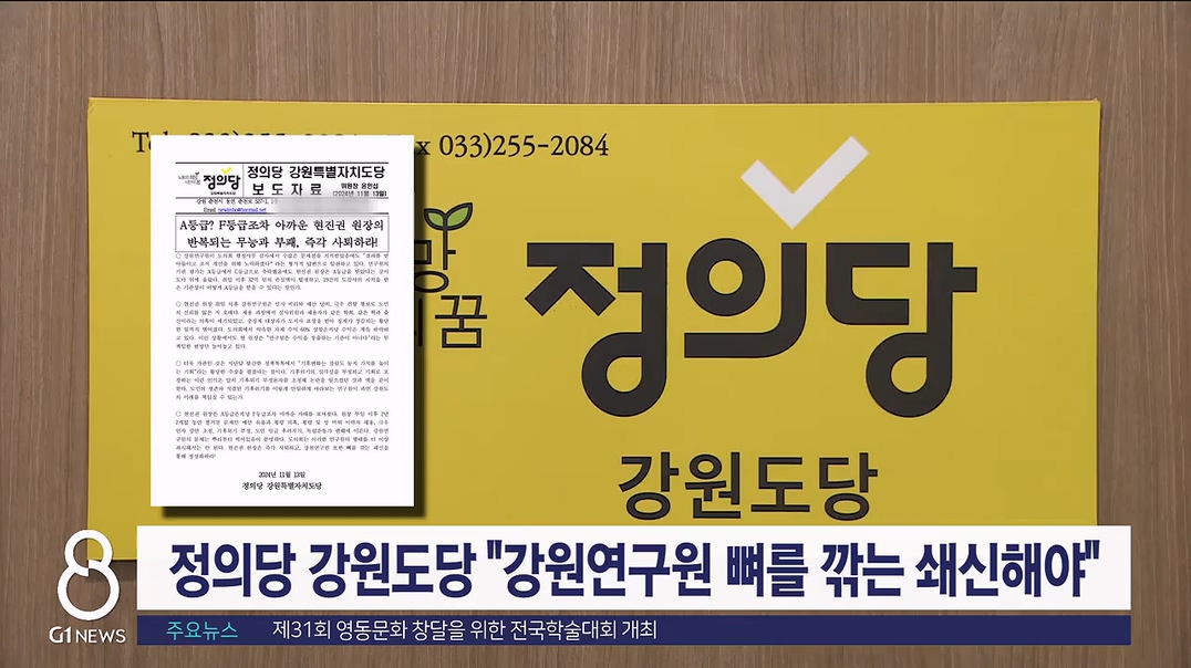 정의당 강원자치도당이 성명을 내고 강원연구원을 향해 "뼈를 깎는 쇄신에 나서라"고 촉구했습니다.