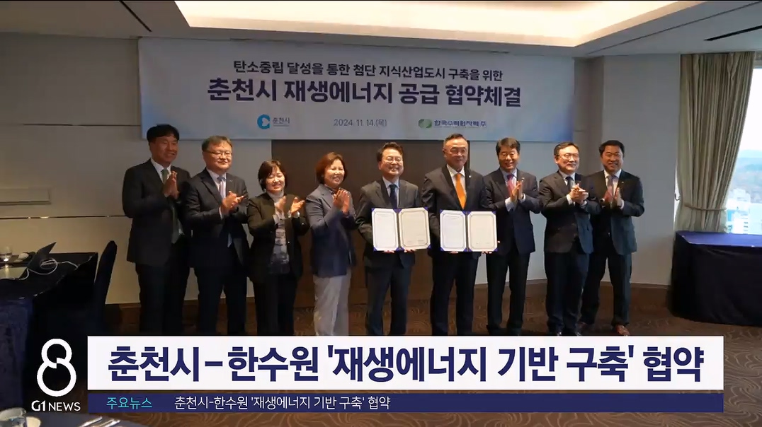 춘천시와 한국수력원자력이 오늘(14일) 업무협약을 맺고, 춘천시 탄소중립 달성을 통한 첨단지식산업도시 구축에 나서기로 했습니다.