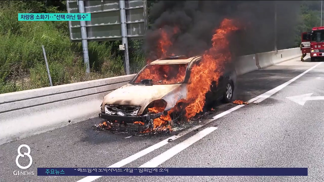 "현재는 7인승 차량이나 화물차에만 차량용 소화기 설치가 의무화 돼있지만, 다음달부터는 5인승 차량에도 차량용 소화기를 의무 설치해야 합니다."