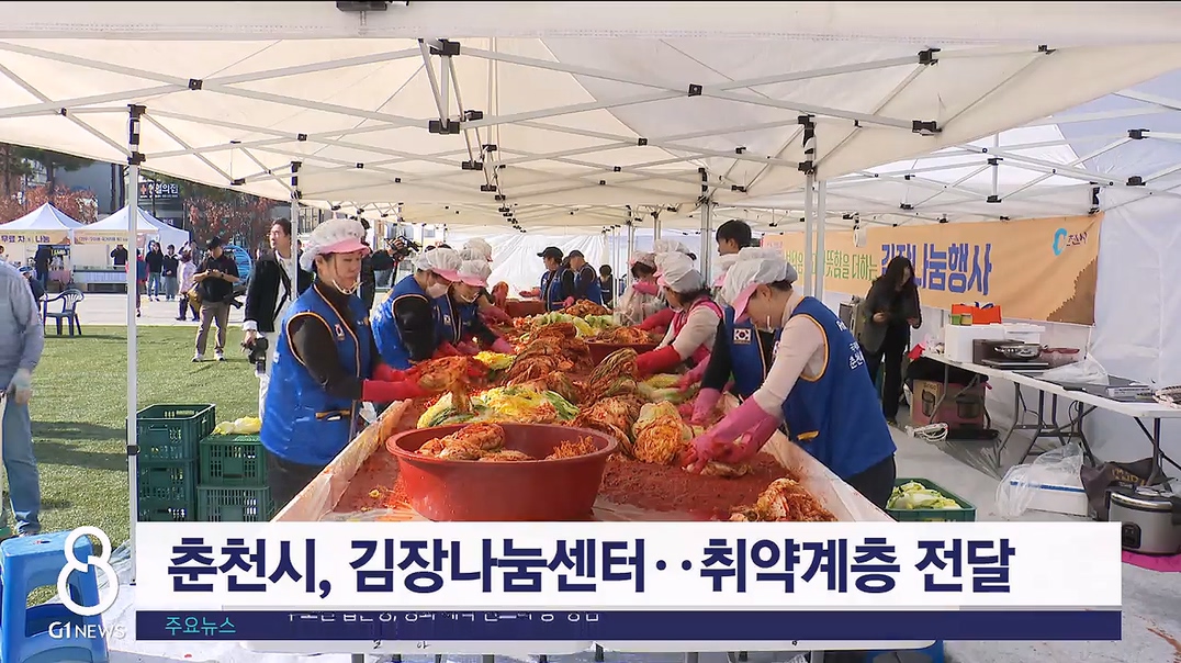 춘천시가 오늘(15일) 오전 시청 광장에서 김장나눔장터를 열고, 김장김치 250상자를 지역 취약계층 가정에 전달했습니다.