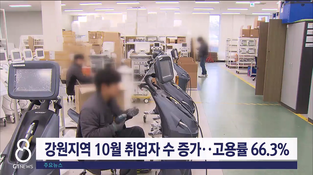 강원지방통계지청이 발표한 '10월 강원자치도 고용동향'을 보면, 지난달 도내 취업자 수는 87만 9,000명으로 전년 동월 대비 만 2,000명 증가했습니다.