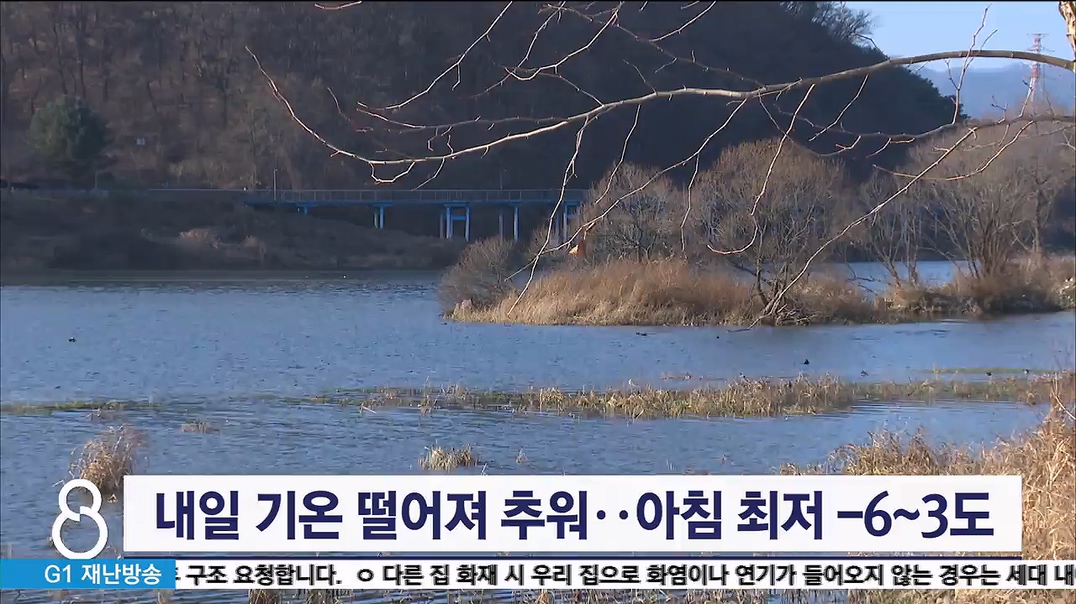 내일(18일) 강원자치도는 대체로 맑겠으며, 기온이 큰 폭으로 떨어지고 바람도 강하게 불어 춥겠습니다.
