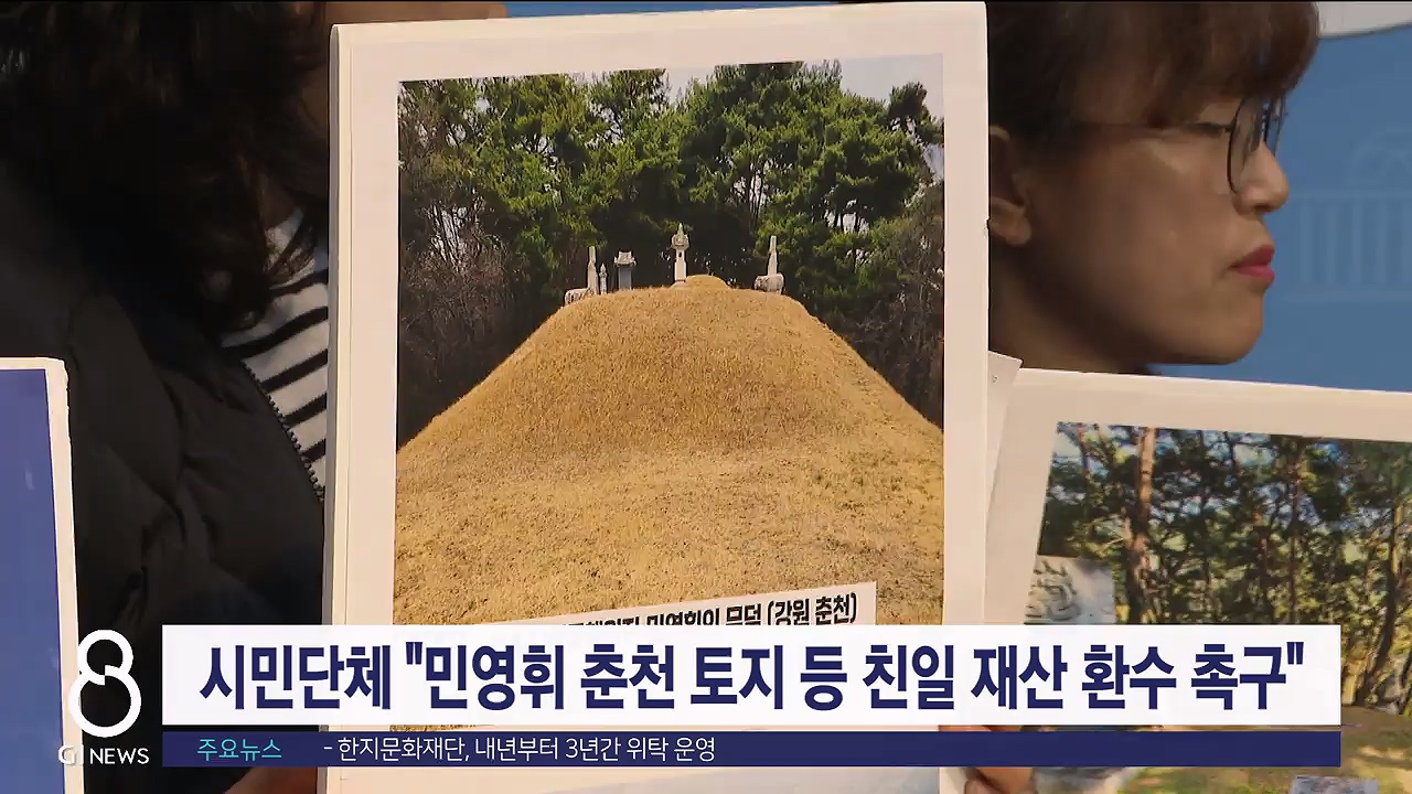이들은 민영휘의 묘가 위치한 춘천 장학리 일대 등 약 30여 억 원의 토지를 환수하기 위해 법무부에 귀속 신청서를 제출했다고 밝혔습니다.