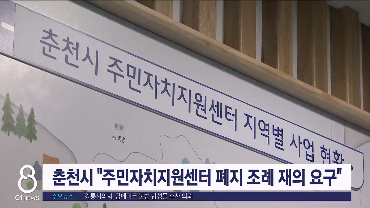 육동한 춘천시장이 '춘천시 주민자치지원센터 설립 및 지원 조례 폐지 조례안'에 대해 재의요구권을 행사했습니다.