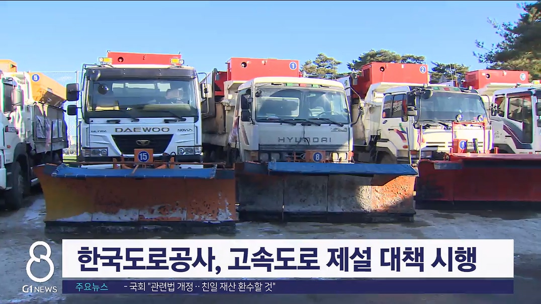 공사는 폭설과 도로 위 살얼음에 대비해 최근 3년간 평균 사용량의 1.2배 수준인 제설제 5만 5천 톤과 장비 210대를 확보했다고 밝혔습니다.