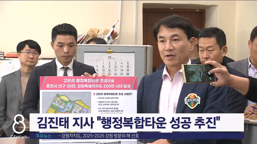 김 지사는 오늘(25일) 기자 간담회에서 "행정복합타운은 128년 만의 도청 이전이자 수부도시 춘천의 도심 확장이라는 의미를 담고 있다"며,