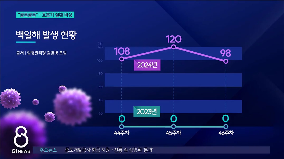 감기 등 일반 호흡기 질환도 늘고 있지만 아이들을 대상으로 한 백일해와 마이코플라스마 폐렴 확산세가 무섭습니다.