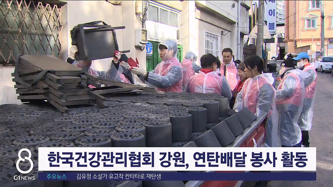 한국건강관리협회 강원자치도지부가 오늘(26일) 춘천 소양로에서 연탄 후원과 배달 봉사 활동을 벌였습니다.