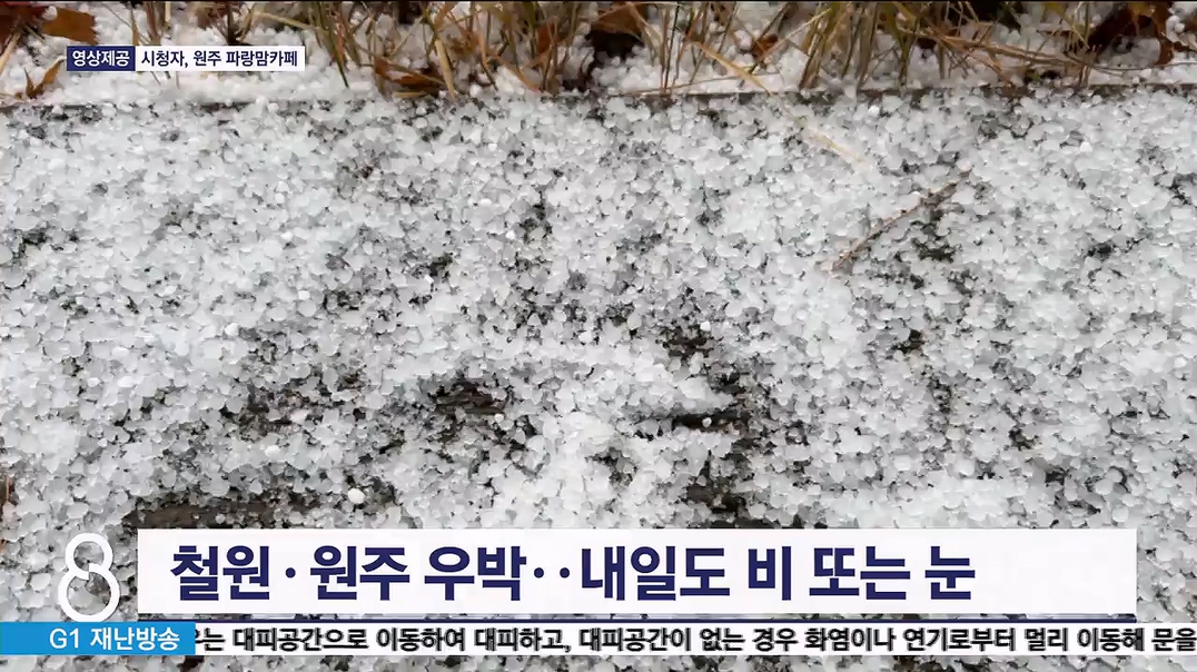 비가 내리고 강풍이 부는 등 변덕스러운 날씨가 이어지는 가운데 철원과 원주에서 우박이 쏟아졌습니다.
