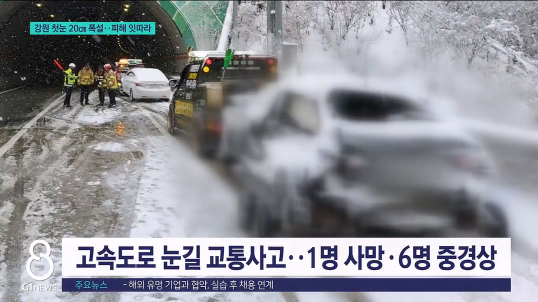 정선에서는 차가 미끄러져 70대 운전자 1명이 심정지 상태로 구조되는 등 도내 곳곳에서 눈길 교통사고가 이어졌습니다.