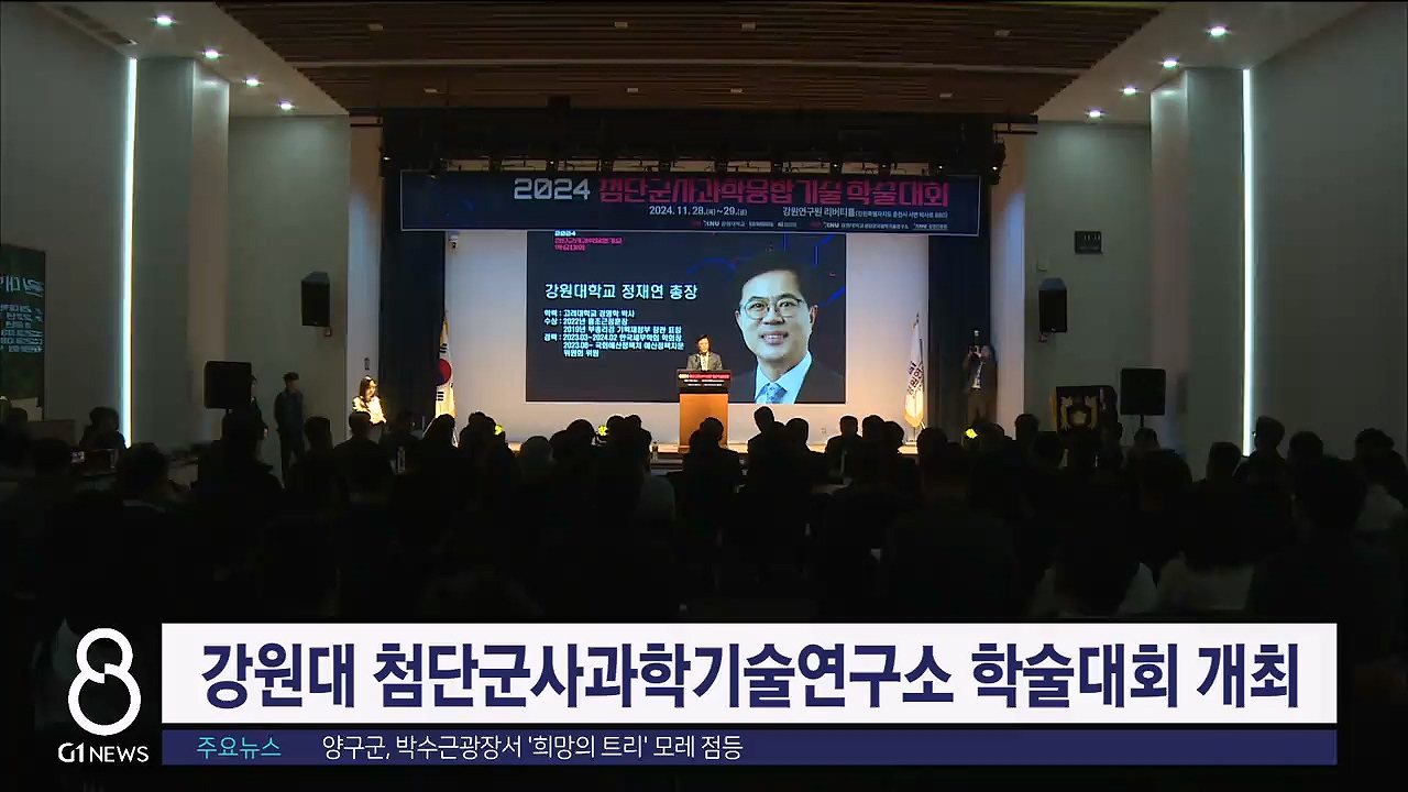 강원대 첨단군사과학기술연구소가 오늘(28일)부터 이틀간 강원연구원 리버리홀에서 '2024 첨단군사과학융합기술 학술대회'를 개최합니다.