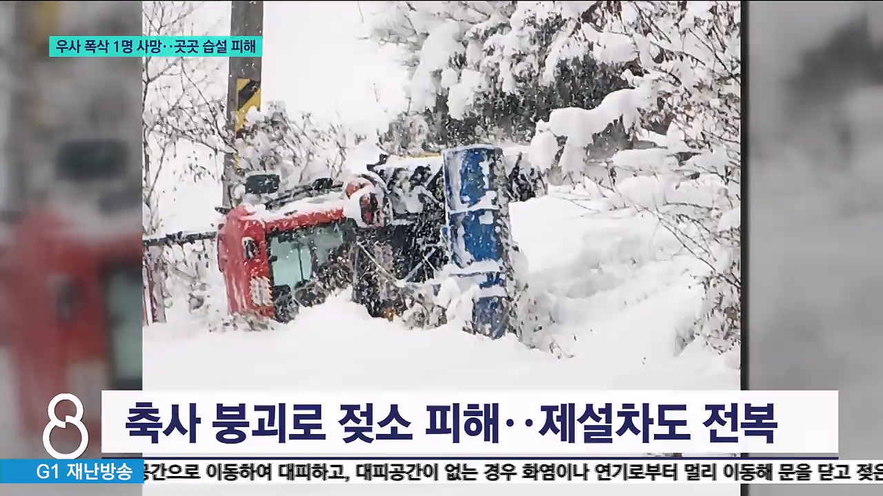 우사 폭삭 1명 사망..곳곳 습설 피해