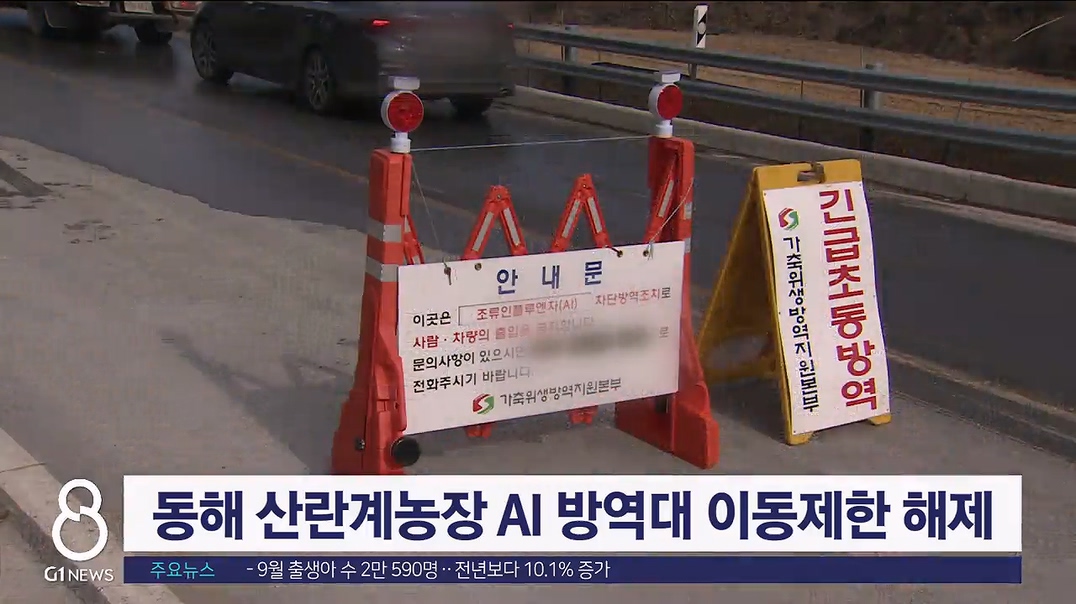 강원자치도 조류인플루엔자 방역대책본부는 지난달 29일 동해시 산란계농장에서 발생한 고병원성 조류인플루엔자 방역지역 농장들에 대한 이동제한 조치를 오늘(29일)부터 전면 해제한다고 밝혔습니다.
