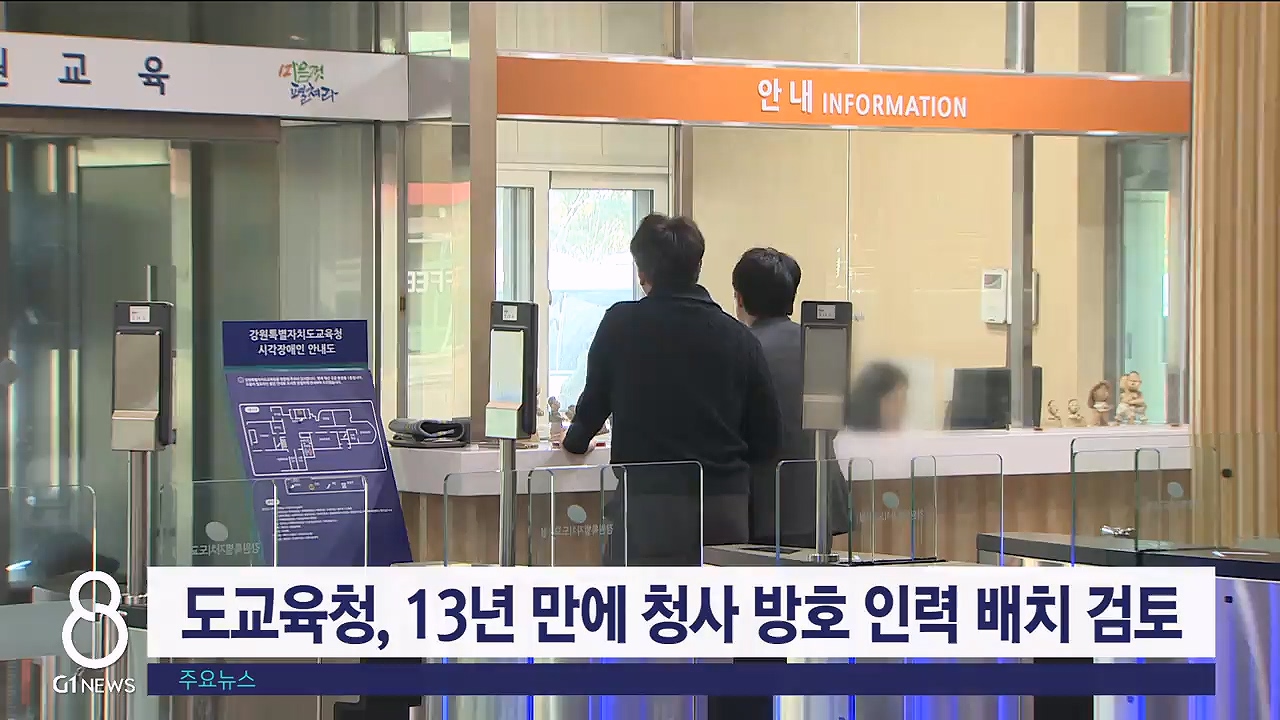 강원자치도교육청 청사 방호 인력 미배치 문제에 대한 G1뉴스 보도 이후, 도교육청이 13년 만에 청사 방호 전담 인력 배치를 검토하고 나섰습니다.