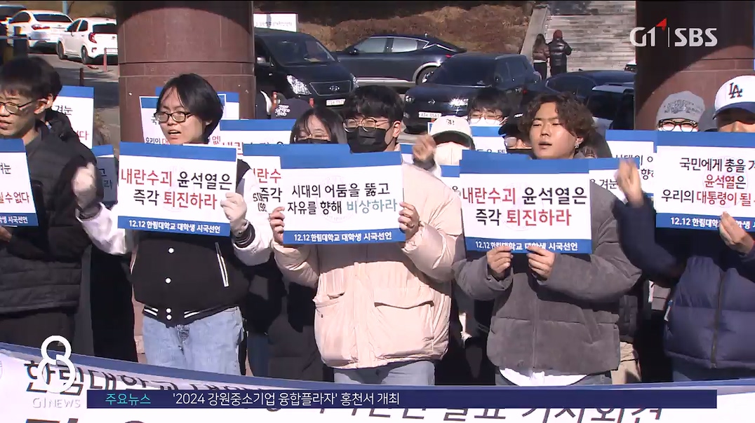 한림대학교 학생들은 오늘(12일) 교내 정문 앞에서 시국선언을 발표하고, 윤석열 대통령의 즉각적인 퇴진을 촉구했습니다.