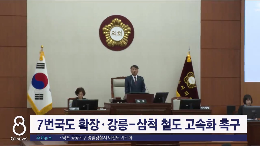 강릉시의회가 지역을 관통하는 7번국도 확장과 강릉-삼척간 철도 고속화 추진을 촉구하고 나섰습니다.